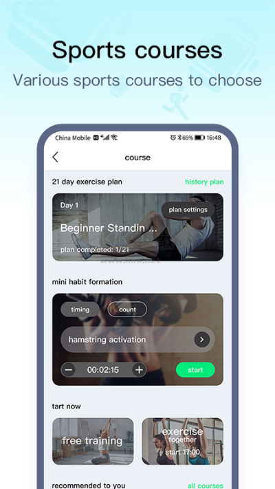 運動計劃:幫助您規(guī)劃自己的運動生活,追蹤日常運動的小目標,還能通過智能手環(huán)進行提醒,告別粗放、無序的運動方式;