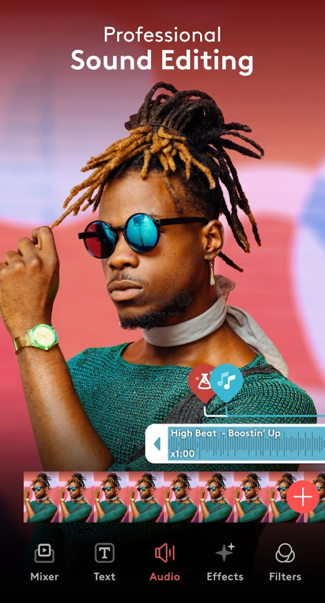 攝影工具豐富:提供豐富的攝影工具,包括幀級精確修剪、畫面分割、音頻調節(jié)等功能。