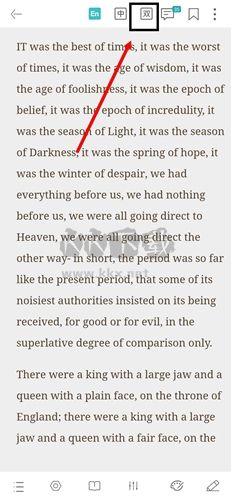 然后上下邊框出來菜單,我們點擊菜單上的雙字,就能享受雙語閱讀了。