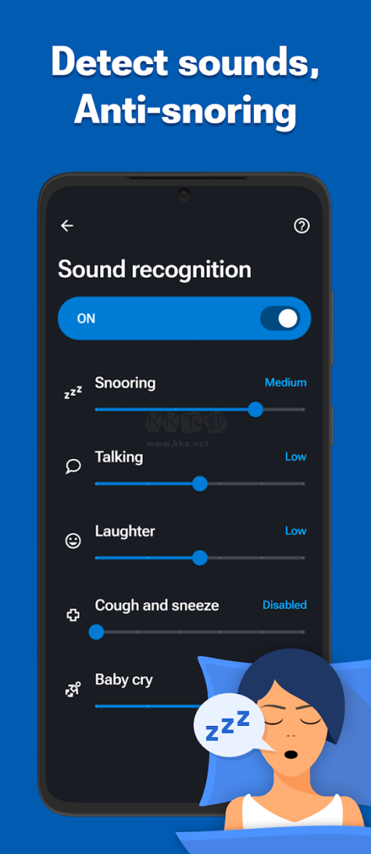 睡眠追蹤app是一款超級好用的睡眠輔助軟件,這款軟件能夠幫助用戶更好的進入睡眠,用戶還能用于睡眠質(zhì)量監(jiān)測,有了這款軟件,可以快速的完成入睡,并且還為用戶提供了智能喚醒,催眠曲,防打鼾等功能,使用戶擁有高質(zhì)量的睡眠,感興趣或者有需要的小伙伴就快來kk網(wǎng)站下載體驗一下吧。