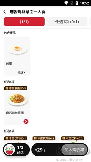 3、選擇完成后,將心儀的餐品加入購物車。