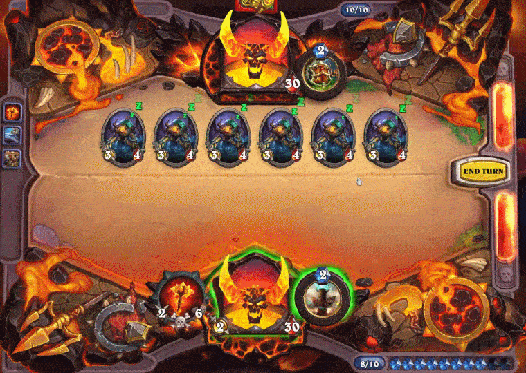- 直傷隨從:“藍腮戰(zhàn)士”,2費2-1,沖鋒屬性使其可以在當(dāng)回合就對敵方英雄造成傷害,在搶血或者解場時都有一定的作用。