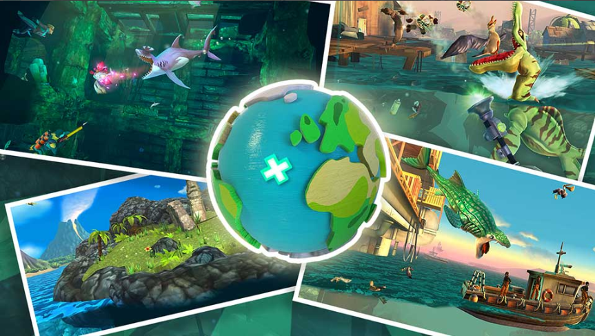 升級你的鯊魚并裝備一些令人驚嘆的小工具,使其咬得更厲害,游得更快,甚至變得更加饑餓! 沒有耳機、雨傘和該死的噴氣背包的鯊魚是不完整的!