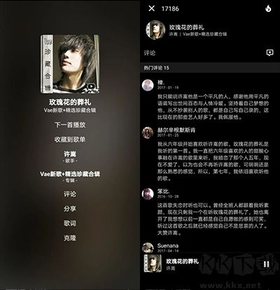 5、搜索顯示的歌曲也來自網易云音樂和QQ音樂,這些音樂都能免費播放,無需會員付費,不僅僅如此,用戶還能像在官方平臺一樣使用已登陸的賬號進行評論、收藏、分享,甚至是免費下載!