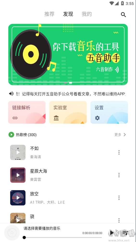 5. 音樂鏈接解析:復(fù)制其他平臺的音樂鏈接到五音助手內(nèi),即可解析播放,支持跨平臺音樂資源獲取。