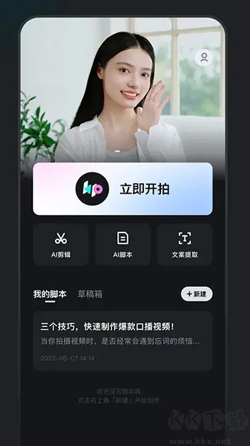 文案提?。?一鍵提取視頻或圖片中的文案,快速創(chuàng)建口播臺本,使視頻錄制更加便捷。