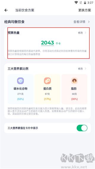4、點擊預算熱量中的修改功能;