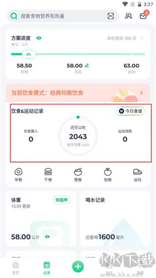 1、在記錄界面點擊今日食譜記錄;