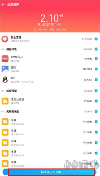 2、點(diǎn)擊一鍵清理即可