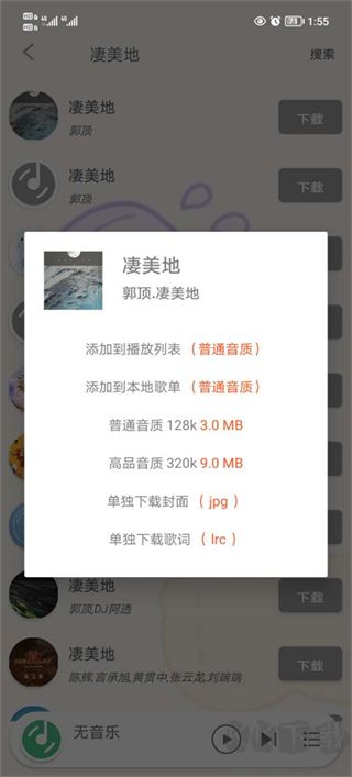 2、除了音樂的在線試聽,下載當然也是沒有任何問題的,支持普通音質(zhì)和高品質(zhì)的下載。