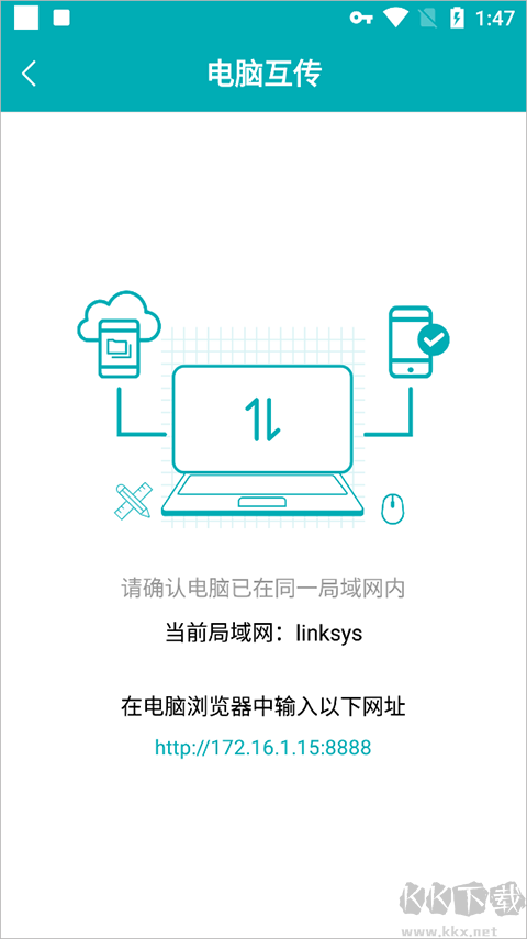 5、這個(gè)之后就需要在電腦瀏覽器中輸入一下網(wǎng)址就能夠進(jìn)行互傳了哦。