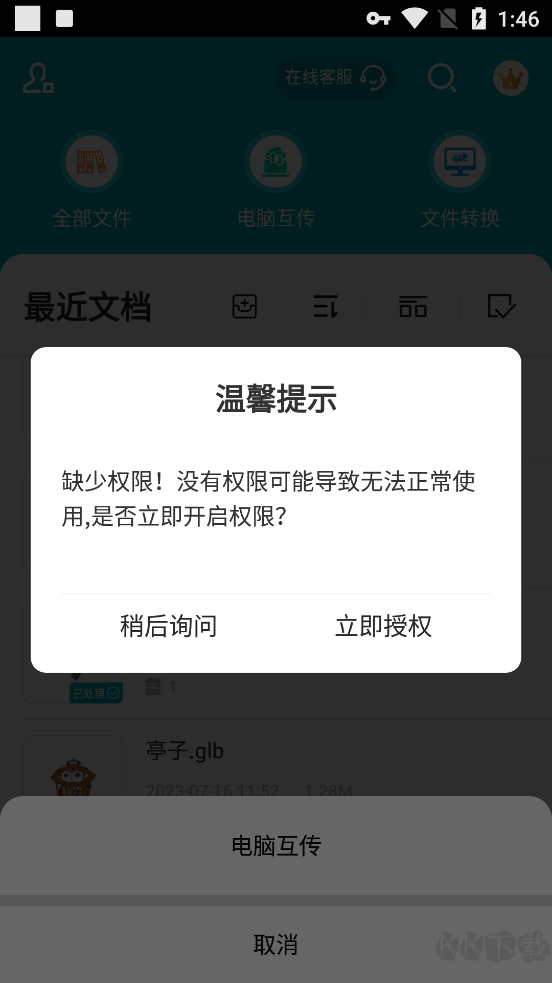 3、在互傳之前需要先授權(quán),點(diǎn)擊立即授權(quán)。