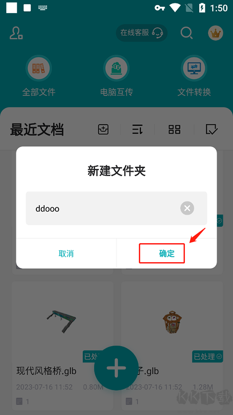 2、然后就會(huì)彈出來(lái)一個(gè)新建文件夾,輸入文件夾名稱(chēng)點(diǎn)擊“確定”即可。