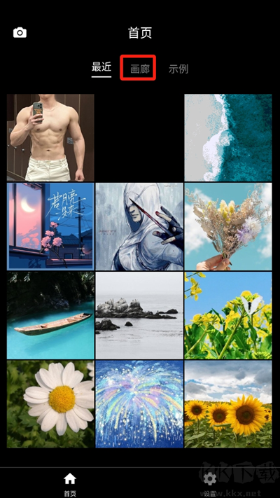3、接著進(jìn)入軟件首頁可以通過最近或者畫廊處找尋自己想要生成肌肉的圖片,我們?cè)诋嬂戎姓覍?