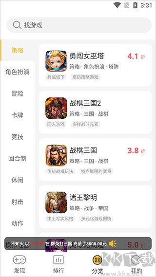 2、在【排行】中,用戶可以查看人氣榜和充值榜,可以更好的幫助用戶選擇游戲;
