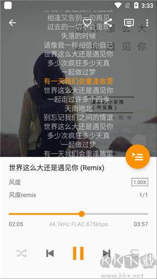 3、播放開始后,該軟件將自動(dòng)自動(dòng)下載和顯示專輯封面和藝術(shù)家圖片,包括顯示歌詞 (標(biāo)簽內(nèi)置歌詞或lrc文件);