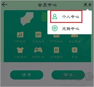 2、進入會員中心后,點擊頁面右上角的【更多】,選擇【個人中心】;