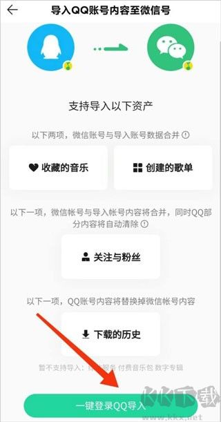 3、點擊后,進入以下界面,點擊底部的【一鍵登錄QQ導入】即可。