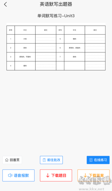 英語默寫出題器app去廣告版是一款非常值得大家下載使用的英語學(xué)習(xí)軟件,擁有語音默寫,課本出題,在線練習(xí),錯題批改等等豐富功能,讓用戶能夠很好的學(xué)習(xí),除此之外,這款軟件還為用戶提供配套課本單詞的的打印、下載、語音默寫、在線練習(xí)功能。為用戶帶來極大的便利,喜歡的朋友千萬不要錯過它~