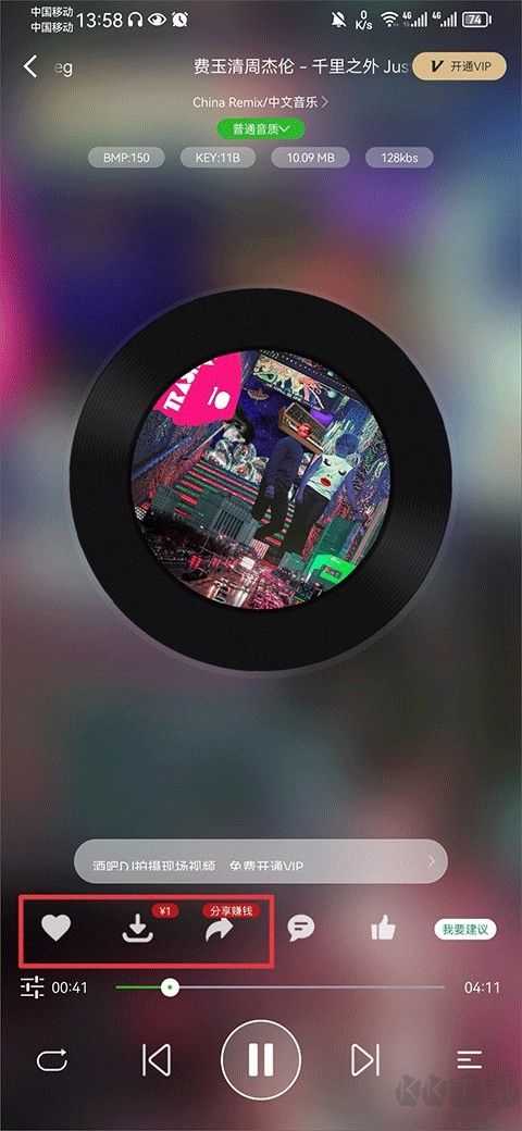 3、然后就可以聽該音樂啦,喜歡的話還可以將歌曲下載、收藏、分享。