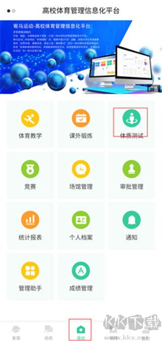 1、用戶(hù)在高校頁(yè)面中點(diǎn)擊體質(zhì)測(cè)試按鈕;
