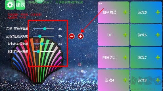 3、根據(jù)游戲環(huán)境,自定義設(shè)置靈敏度參數(shù),已達(dá)到更好的游戲體驗(yàn)。