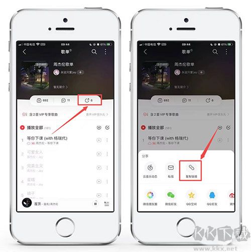 1、首先,前往該音樂(lè)平臺(tái),找到想聽(tīng)但顯示灰色的音樂(lè),點(diǎn)擊【分享】按鈕,彈出菜單復(fù)制【鏈接】選項(xiàng);