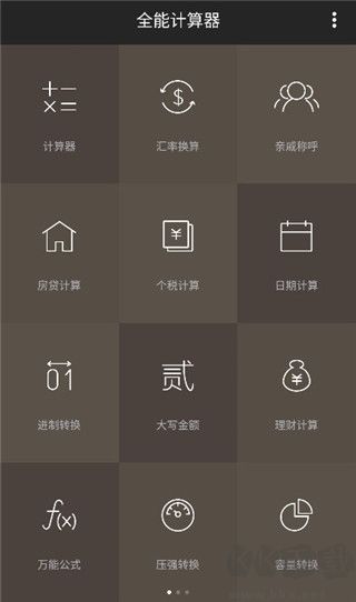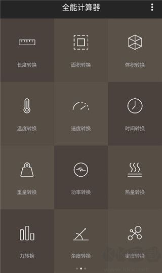 1、大家安裝進(jìn)入之后可以看到這款計(jì)算器擁用三頁功能,用戶可以在這里找到各種能夠計(jì)算的“單位”;