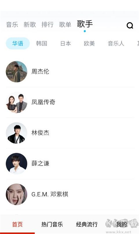 3.軟件上面有很多不同的歌曲類型,滿足了所有用戶的聽歌需求。