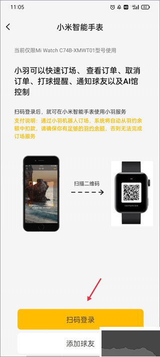 4、線上智能手表上的二維碼展開(kāi),點(diǎn)擊“掃碼登錄”按鈕。