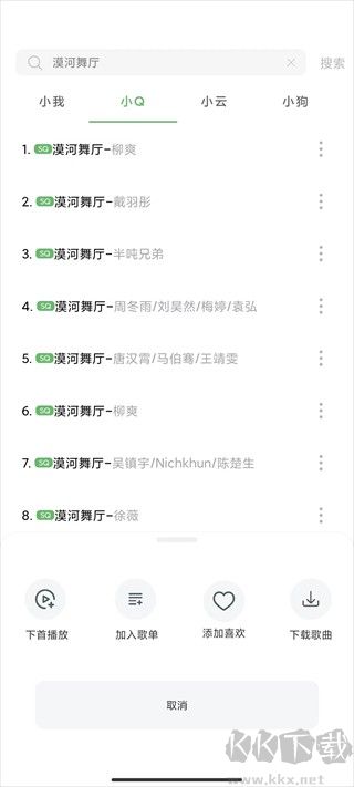 6、找到喜歡的歌曲,點(diǎn)擊右側(cè)的三個(gè)點(diǎn)按鈕,即可看到下載歌曲按鈕;