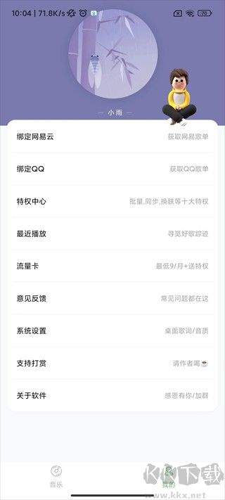 3、點(diǎn)擊我的按鈕,玩家可以自行綁定網(wǎng)易云、QQ賬號(hào),還可以查看最近播放的音樂;