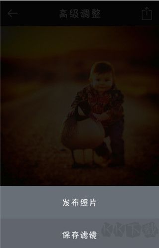 8、所有的做好后點擊右上角,會出現(xiàn)"發(fā)布圖片“,”保存濾鏡“和”取消“,如果你不想發(fā)布就保存濾鏡吧。