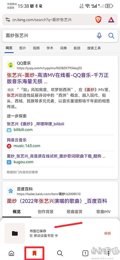 1、在瀏覽感興趣的網(wǎng)頁時,點擊頁面下方菜單欄的書簽按鈕保存。