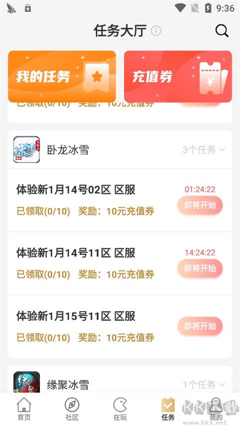 但是,有沒有什么辦法能夠在這個(gè)基礎(chǔ)上繼續(xù)削減玩家的開銷呢?答案是肯定的!打開996盒子后可以看到首頁里有一個(gè)任務(wù)大廳,系統(tǒng)會(huì)定時(shí)發(fā)送來自不同的《傳奇》品類游戲的任務(wù),比如說在某個(gè)新區(qū)上線后進(jìn)入游戲體驗(yàn)指定的時(shí)間,同時(shí)完成等級要求,就可以獲得一定金額的充值券獎(jiǎng)勵(lì)。