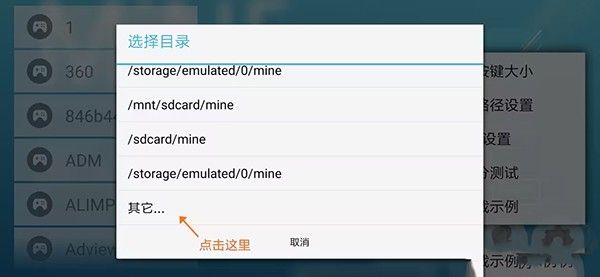 會有一個“其他”點擊它,就會跳轉到根目錄了,再點擊下方的“設置目錄”就可以把模擬器的默認路徑設置到手機的根目錄了