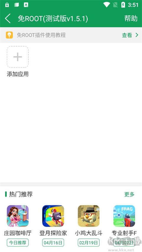 5、返回首頁,在免root功能中還可以添加游戲或者應(yīng)用。
