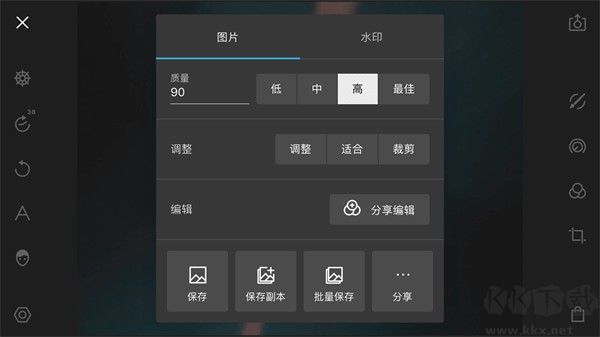 質(zhì)量:polarr修圖在導(dǎo)出時支持將質(zhì)量設(shè)置為低、中、高、最佳四個檔次,輸出質(zhì)量越高圖像的整體質(zhì)量(清晰度、色彩、細節(jié)等)就會越高,但圖片體積也會越大。