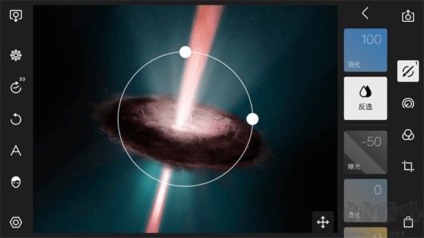 利用圓形調(diào)整,我們可以選擇性的調(diào)整部分畫面,從而實現(xiàn)更加精細的調(diào)整。當(dāng)我們新建一個圓形調(diào)整之后,畫面中會出現(xiàn)一個圓圈,圓圈以外的部分表示受到我們調(diào)整參數(shù)的影響,圓圈以內(nèi)的部分表示不受我們調(diào)整參數(shù)的影響。