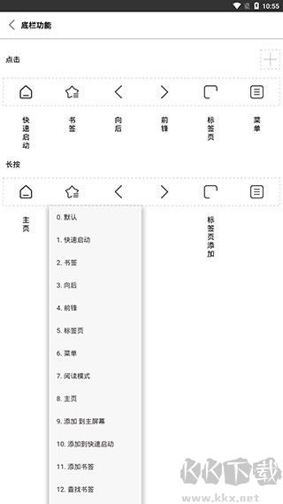 5、最后可以看到底欄功能分為點擊和長按兩種,點擊其中任意一個在彈出的窗口中【選擇功能】即可。