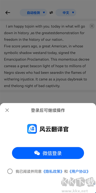4、使用微信授權(quán)登錄就可以快速完成翻譯