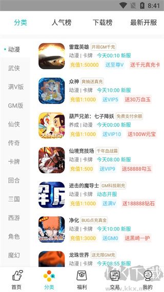 3、點擊分類,這里有很多不同類型的游戲,還有人氣榜單,熱門榜單推薦;