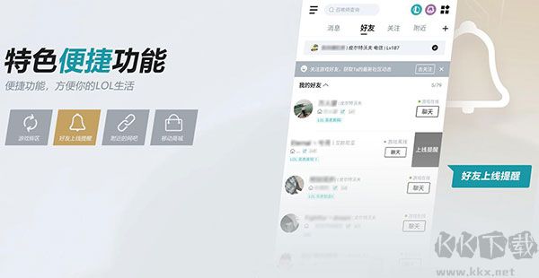 特色便捷功能,方便你的LOL生活!游戲轉(zhuǎn)區(qū)、好友上線提醒、附近的網(wǎng)吧、移動(dòng)商城等豐富的便捷功能等你來(lái)體驗(yàn)!