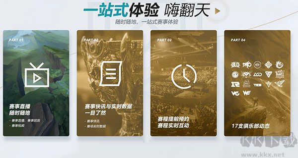 一站式體驗(yàn),嗨翻天!隨時(shí)隨地,一站式賽事體驗(yàn),賽事直播隨時(shí)隨地、賽事快訊一目了然、賽程預(yù)約實(shí)時(shí)互動(dòng)、17支俱樂(lè)部動(dòng)態(tài),還有賽場(chǎng)實(shí)時(shí)數(shù)據(jù)和視頻回放!