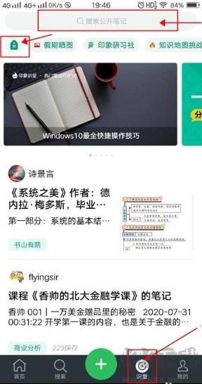 2、點(diǎn)擊下方欄中的識(shí)堂。在搜索欄輸入關(guān)鍵字或點(diǎn)擊左上角的標(biāo)簽按鍵。