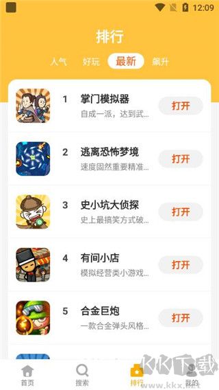 4、在排行頁面中,分為了人氣、好玩、最新、飆升欄目,每個欄目游戲排行都是不一樣的。