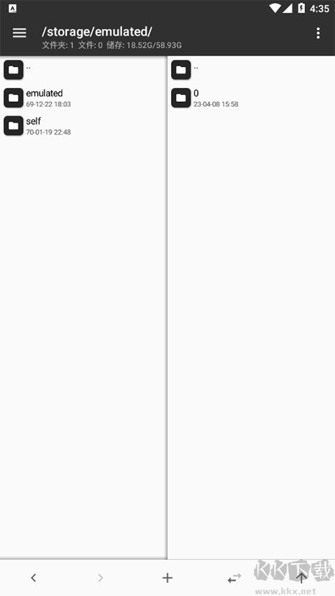 打開 MT 管理器后第一眼看到的就是它的左右兩個操作窗口,該設(shè)計已經(jīng)是 MT 的標(biāo)志之一,與之對應(yīng)的是雙窗口操作模式。如果你是第一次使用,開始會不太適應(yīng),但相信我,等你花點時間來熟悉它后,你的操作效率會大大高于使用其它文件管理器。