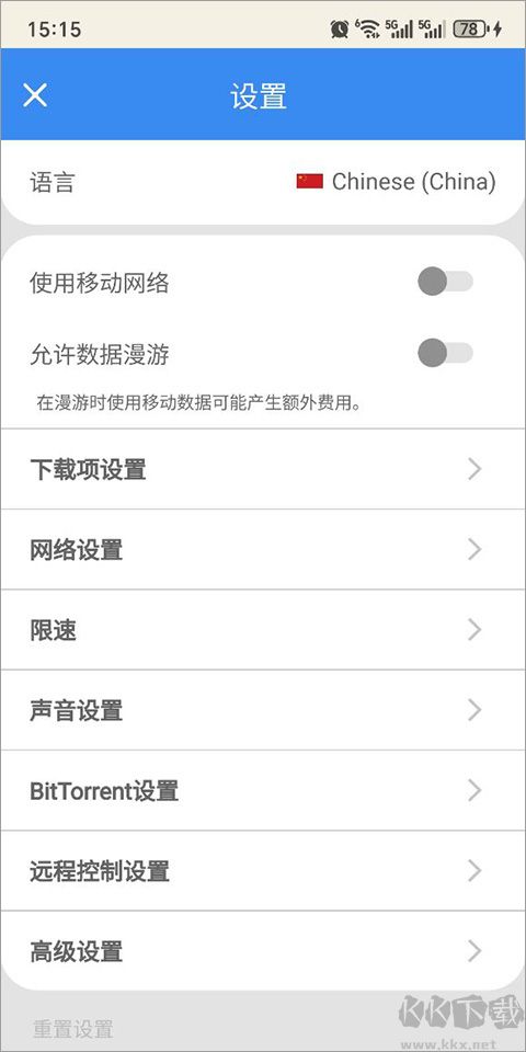 2、在設(shè)置界面可以設(shè)置限速、自動建立文件夾、設(shè)置代理、預(yù)約下載時間等等選項;