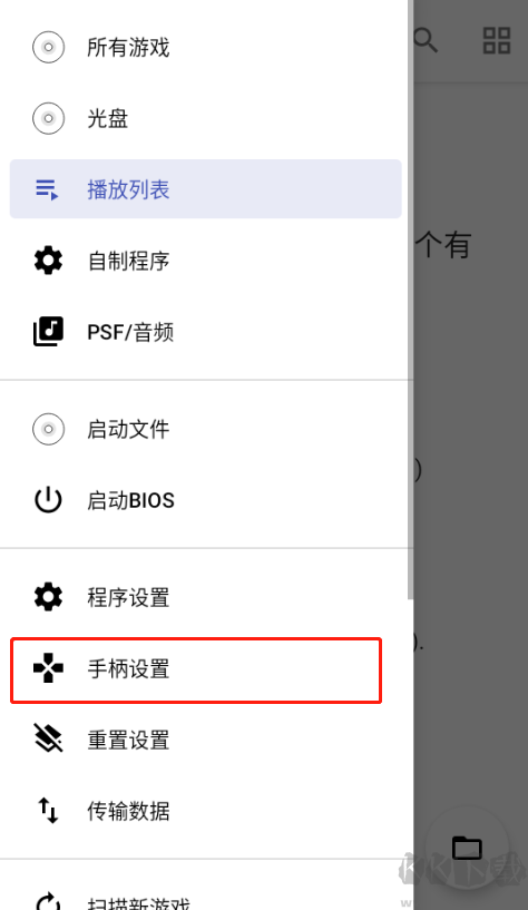 在打開的側(cè)邊欄菜單中點擊“手柄設(shè)置”選項