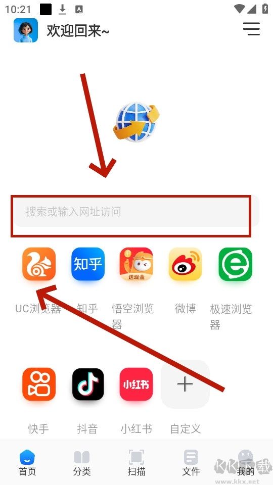 2、搜索速度快,還可以自定義網址進行搜索,快速找到你想要的內容。